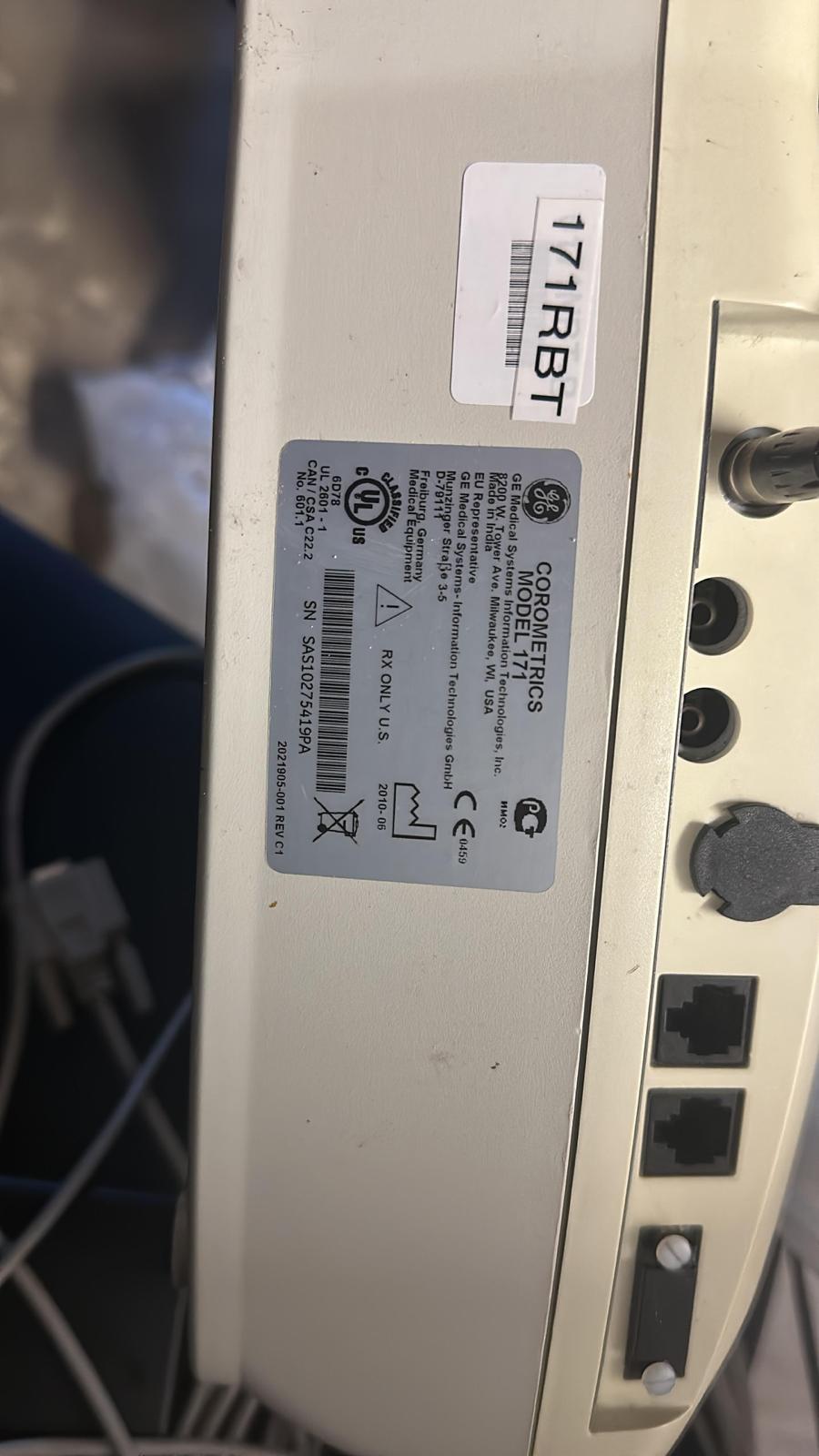 Verkaufe ein zuverlässiges und hochwertiges GE Healthcare Corometrics Series 170 Fetalüberwachungsgerät, das zuvor im Fachbereich der Gynäkologie in unserem MVZ genutzt wurde. Dieses professionelle medizinische Gerät bietet umfassende Funktionen zur Überwachung von Fetalherzschlägen und Wehentätigkeit während der Schwangerschaft und der Geburt.