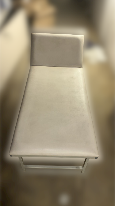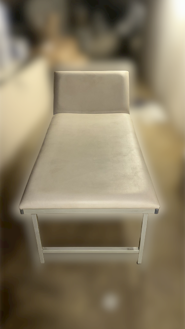 Trotz der Gebrauchsspuren bietet das bequeme Polster der Liege immer noch den nötigen Komfort für Patienten. Die Polsterung ist leicht zu reinigen und sorgt für eine angenehme Liegefläche während der Behandlungen.